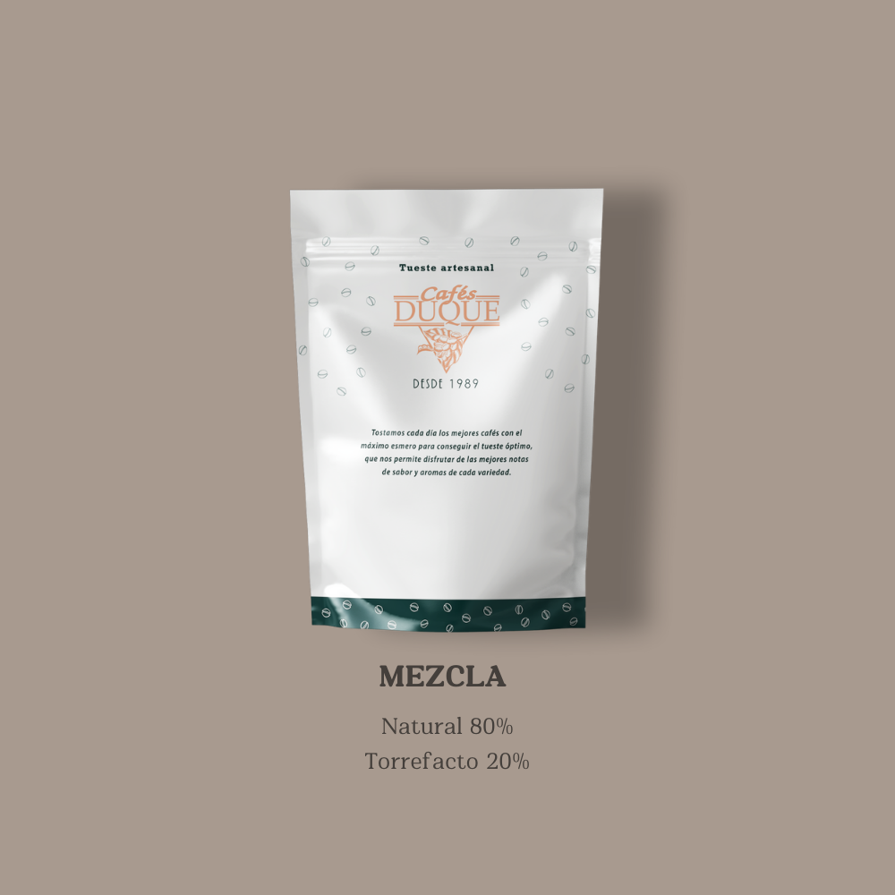 Ese 80% combina el aroma intenso del café colombiano, la acidez ligera del brasileño y el cuerpo y cremosidad que nos aporta la variedad robusta.